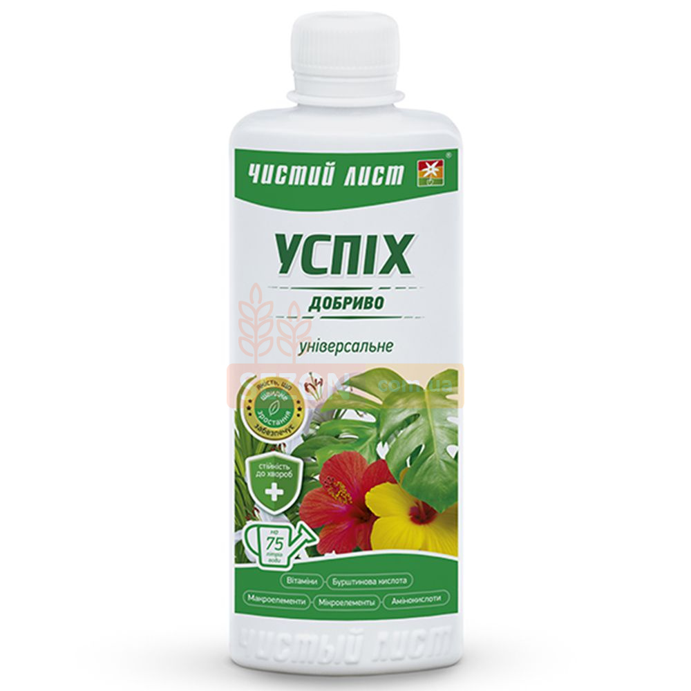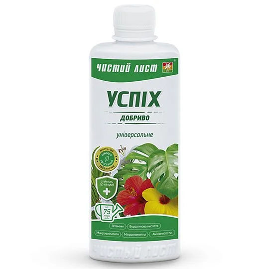 Мінеральне добриво «Успіх» універсальне — це ефективний засіб для комплексного живлення різних видів рослин: декоративно-листяних, квітучих, овочевих культур і кімнатних квітів. Воно забезпечує повноцінний ріст, зміцнення кореневої системи, покращує декоративні якості рослин і підвищує стійкість до захворювань. Препарат містить збалансований склад макро- і мікроелементів, а також біологічно активні компоненти: вітаміни, бурштинову кислоту й амінокислоти.