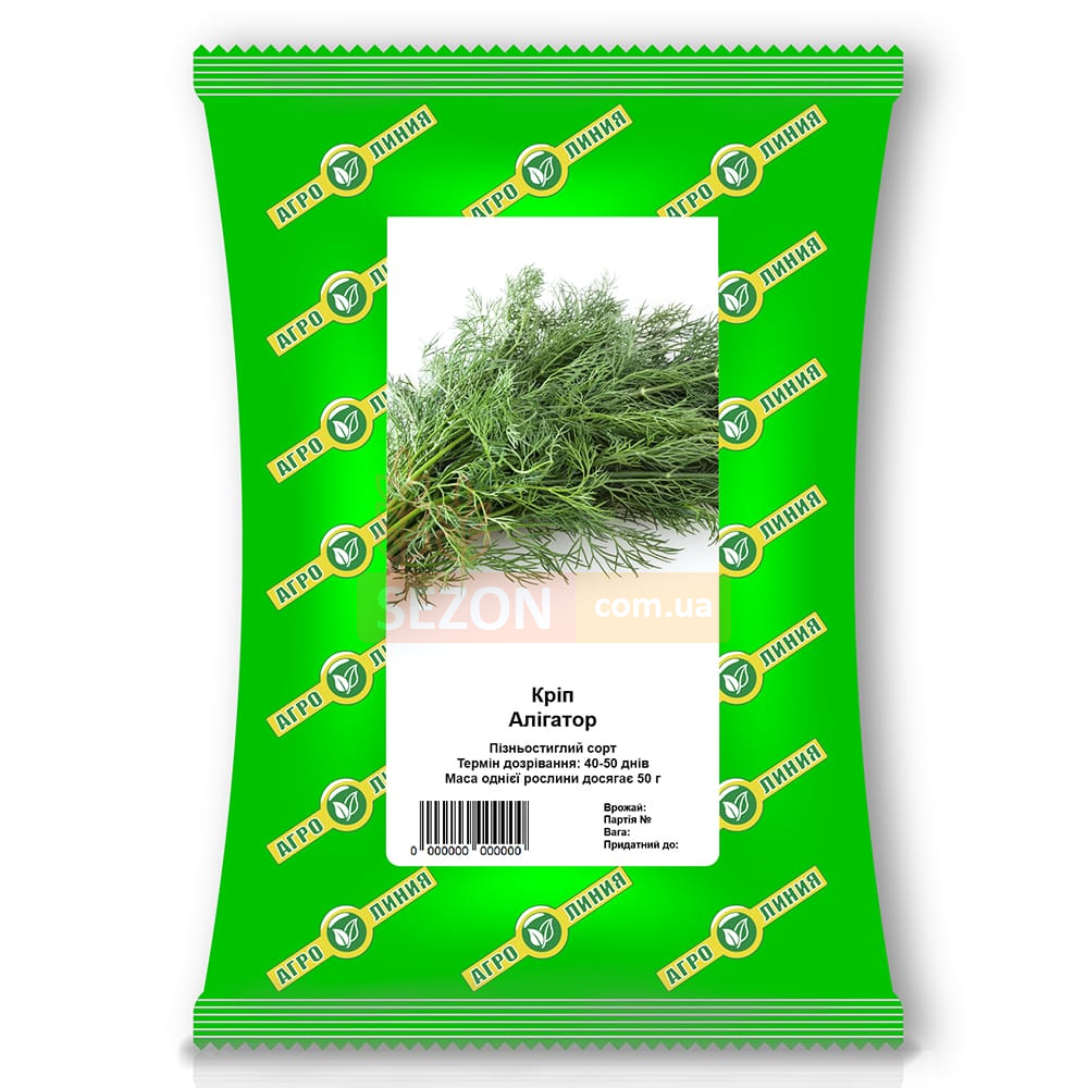 Кріп Аллігатор – це середньостиглий сорт, відомий своєю універсальністю та невибагливістю. Вегетаційний період становить 40-50 днів для збору зелені та 110-115 днів для спецій. Завдяки високій врожайності та стійкості цей сорт чудово підходить як для початківців, так і для досвідчених фермерів та садівників.