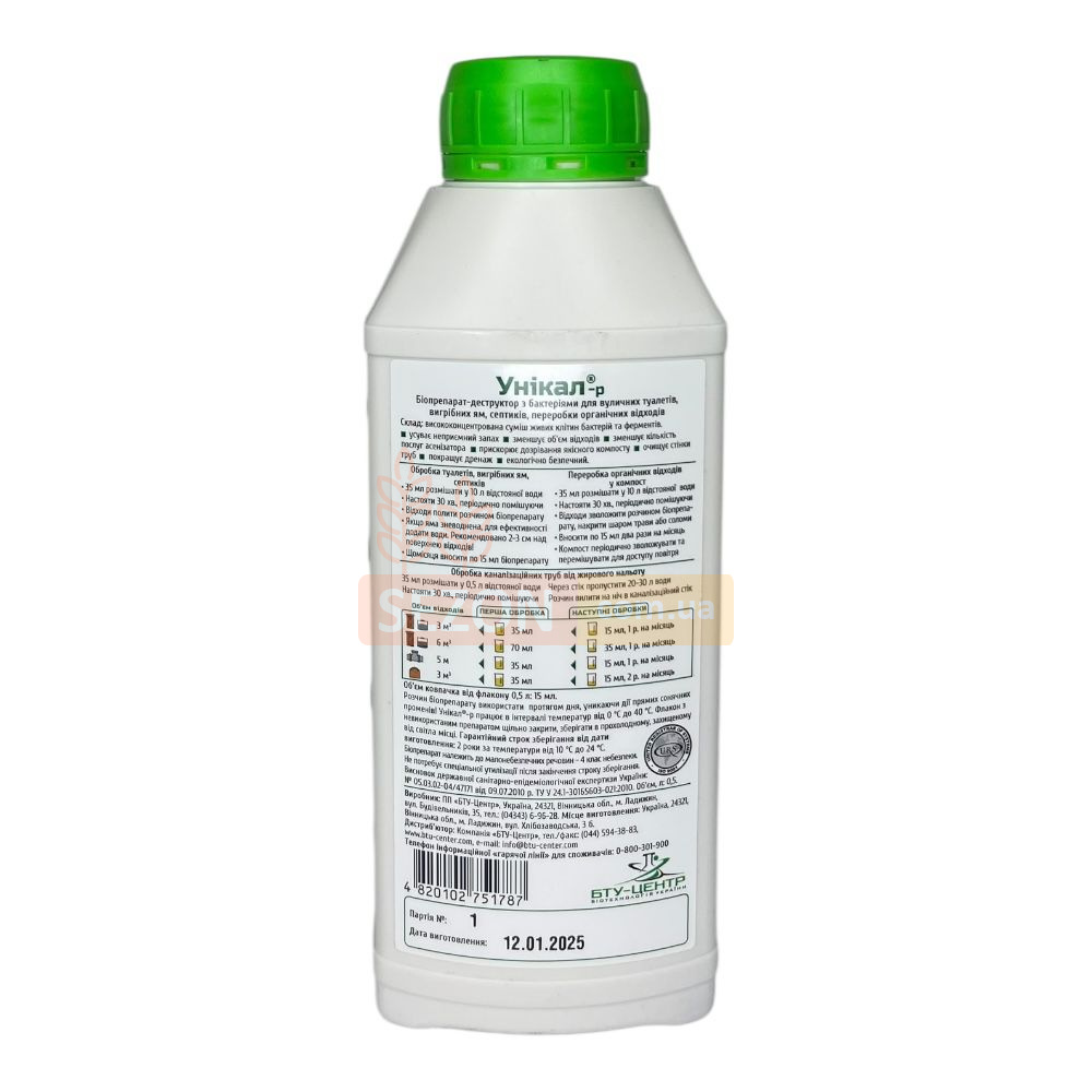 Средство «Уникал®-р» ускоряет разложение фекалий, пищевых и растительных остатков, превращая их в безопасное удобрение, обогащённое полезной микрофлорой. Оно способствует улучшению дренажа, уменьшает объём отходов и частоту вызова ассенизаторской техники. Запах исчезает уже через 3–5 дней после применения.