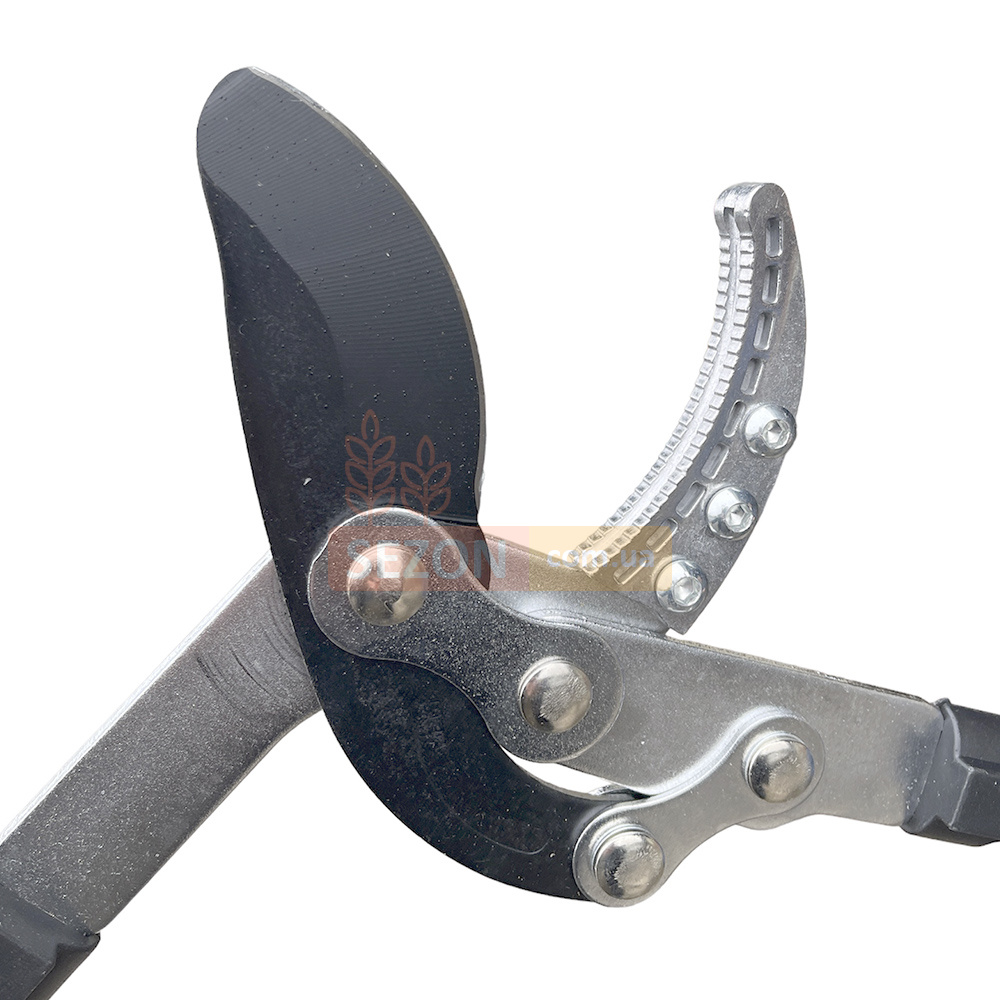 Секатор призначений для обрізання непотрібних гілок, формування бажаної форми крони рослин. Завдяки подовженій рукоятці, при мінімальних зусиллях забезпечується максимальна дія леза, що важливо при роботі в важкодоступних місцях. Ергономічна форма ручок, різальне лезо має покриття, що перешкоджає корозії. Гумові накладки знижують появу втоми у процесі роботи
